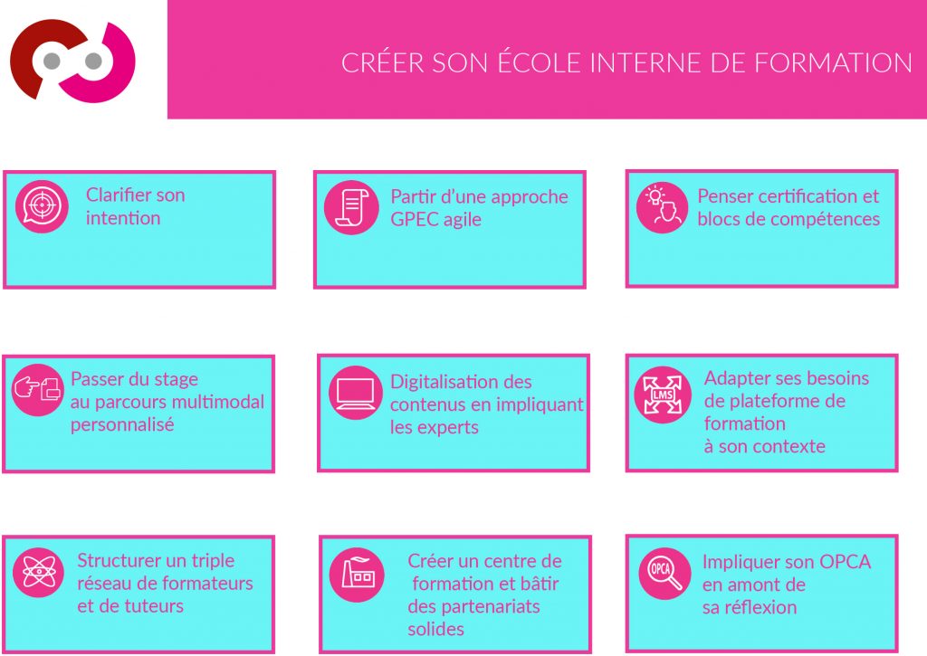 Avec la fin de l’obligation fiscale en formation, les entreprises remettent à l’honneur les écoles internes à la fois plus économiques et plus efficaces pédagogiquement que les formations externes. Voici les 9 points clés que nous avons retenus à partir de notre expérience de création d’écoles internes de formation.